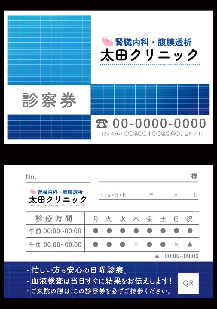 名刺や診察券など、各種カードデザインを承ります。用途に合わせたデザインで、使いやすく、視覚的にも適したカードを作成します。Photoshop、Canva、illustratorのいずれかで作成し、印刷に適したデータでお渡しいたします。